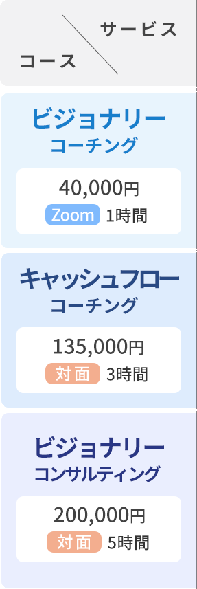 描いている理想の状態を明確にします。思っていることはあるが、クリアになっていないという経営者に対して、ツールを用いたり、コーチングによって、経営者が本当にやりたいことに気づく状態を目指します。